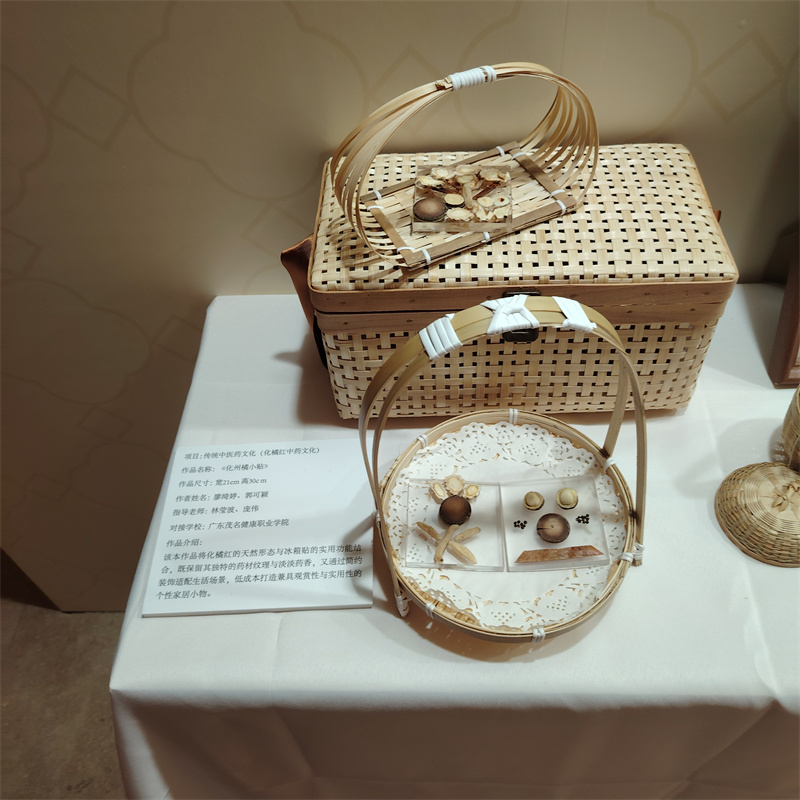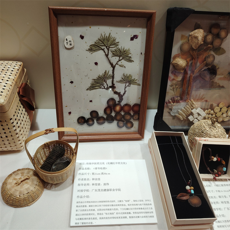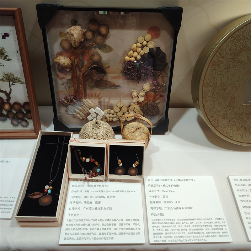 本次“非遗种子计划”活动汇聚全省11个非遗项目与10所高校,我校承担了传统医药文化(化橘红中药文化)的传承创新培育工作。在学校科研部的牵头组织下,相关二级学院遴选出20名“种子学生”,校内教师与省级非遗项目传承人李锋建立深度协作,以化橘红中药文化为载体,通过研学、讲座、科创实践等形式,将传统技艺与现代健康理念相融合,联合开展理论与技艺并重的传承创新培育,不仅强化了学生对本土医药文化的认同,也为化橘红文化的活态传承与产业转化注入了青春力量。《化州橘小贴》《橘红守护健康》等4件学生作品被遴选参加本次成果展出。展览期间,师生代表还面向公众展示化橘红手作、精油等文创、科创产品,吸引了众多海内外游客驻足交流,展现了“非遗+健康”的创新活力。