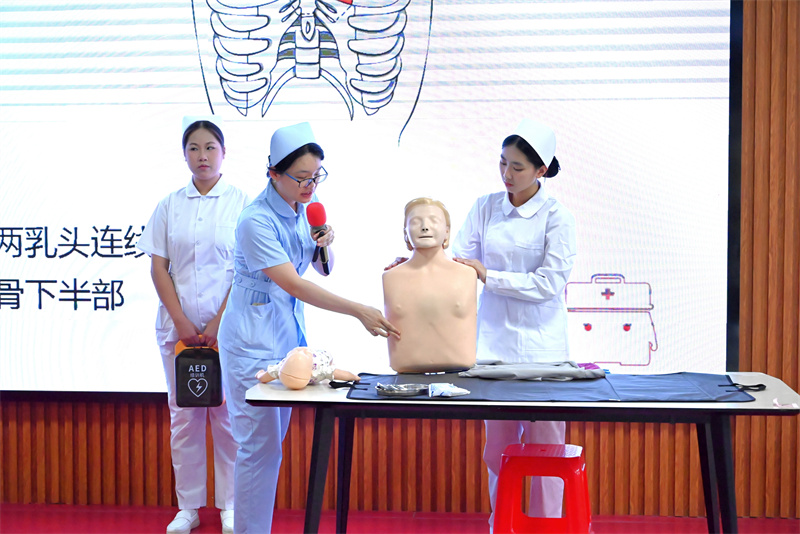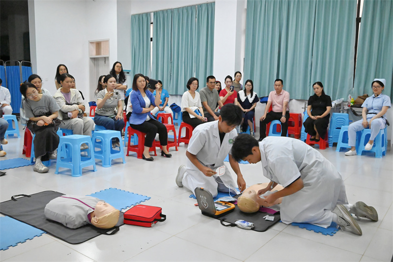 为全面提升教师应急救护能力,切实保障师生生命健康安全,4月17日下午,广东茂名健康职业学院举办新入职教师应急救护知识培训。党委书记钟茹、校长陈哲林及全体新进教师参加培训。