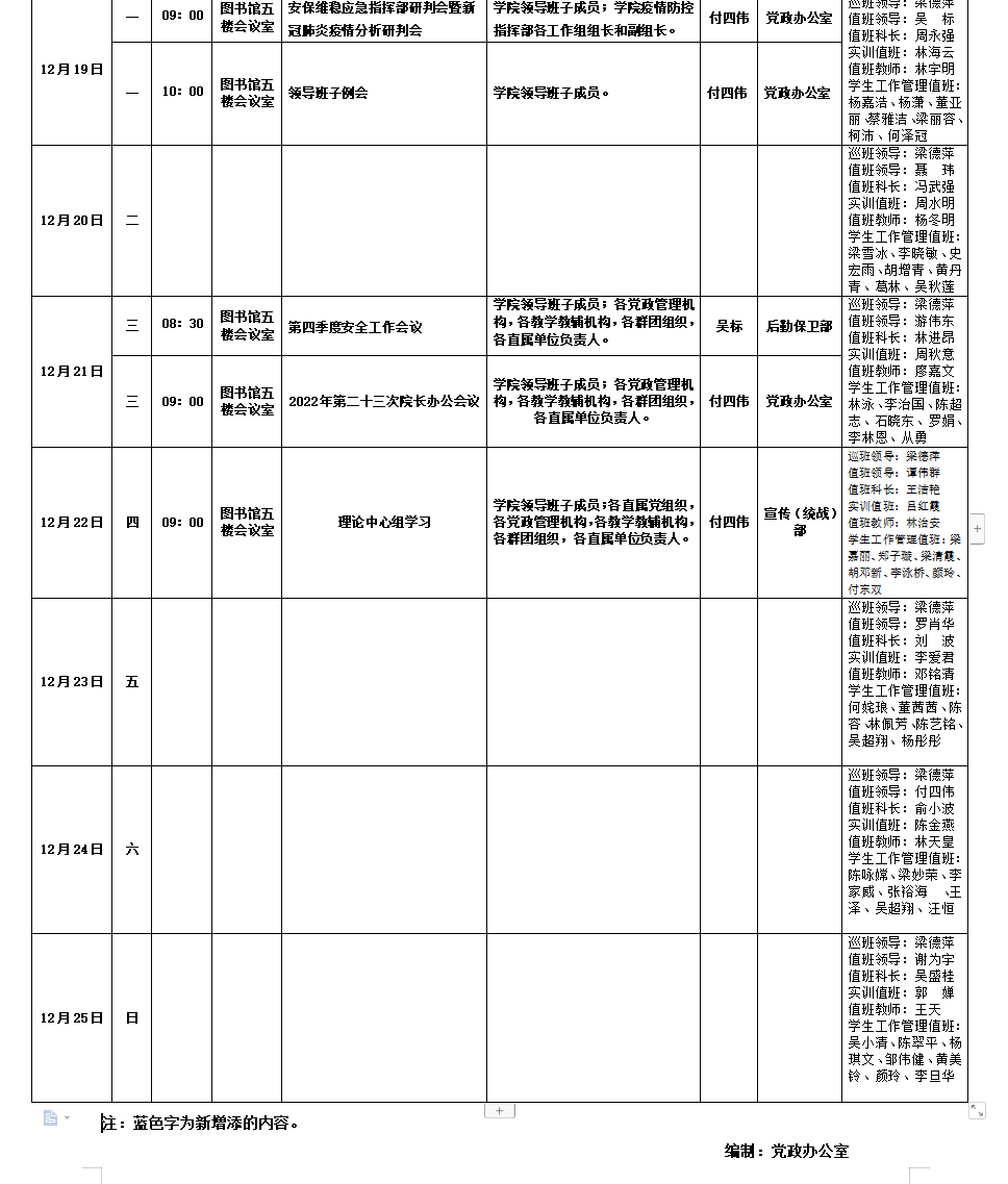 2022-2023学年第一学期工作周程表(第十七周)